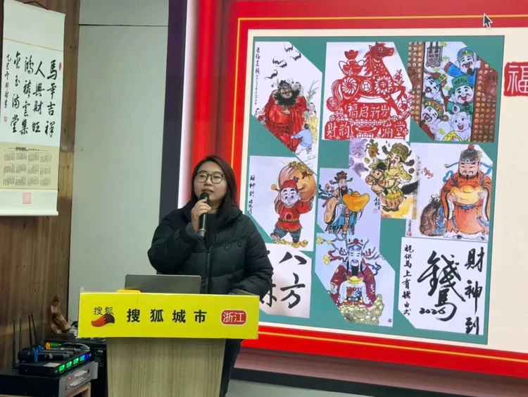 葛秀英老师分享了如何将“马上有财”“马到成功”等吉祥寓意融入剪纸创作;陈美芝老师介绍了其以元宝、聚宝盆为元素的财神画创作思路;邢智勇老师则从文字与文化角度,解读了财神信仰背后民众对幸福生活的朴素向往。