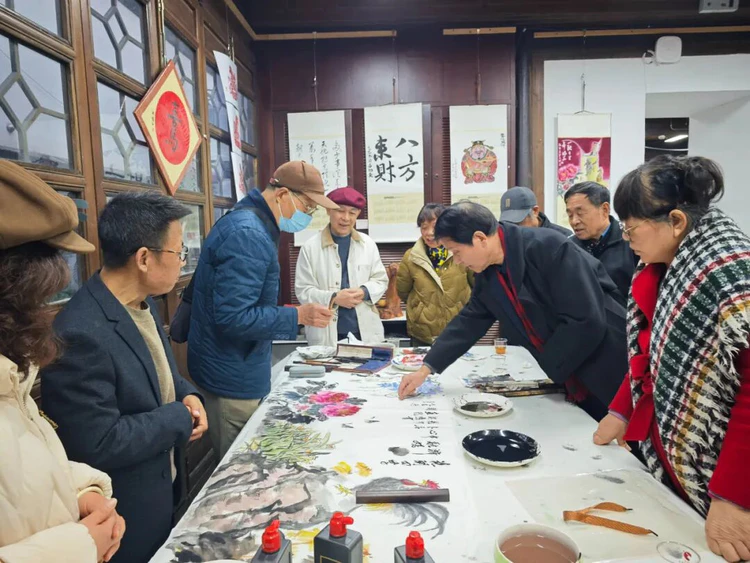 杭州潮鸣书画院院长朱戴林在发言中阐述了挂历画作为新年文化载体的意义,并介绍了展览中涵盖水墨人物、窗花剪纸、财神主题等多种风格的作品。他提到,艺术创作不仅是对传统的继承,更是对美好生活的祈愿,祝愿大家在马年平安健康、五福临门,拥有精神与物质的双重富足。